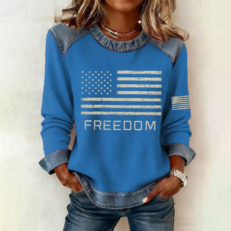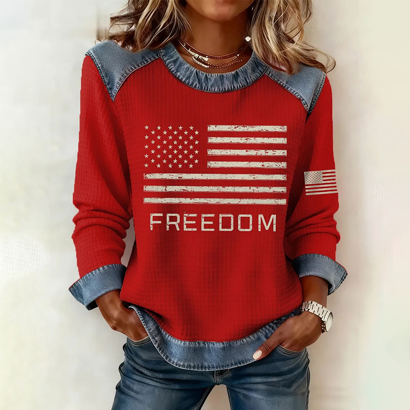 Women's 250th By Flag Cute Puppy Patchwork Print Sweatshirts