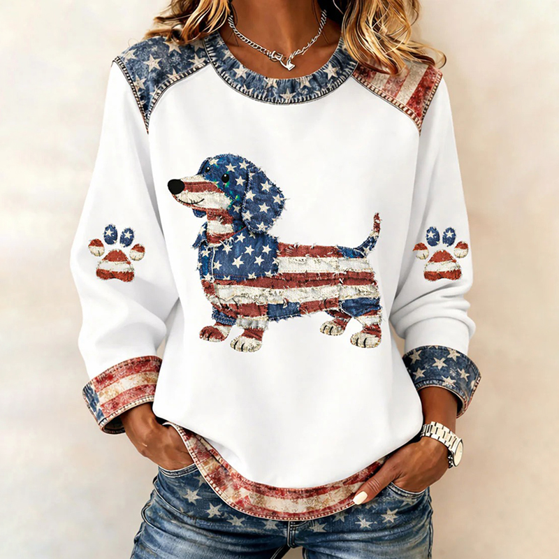 Women's 250th By Flag Cute Dachshund Patchwork Print Sweatshirts
