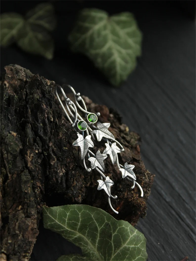 Vintage Leaves Rhinestone Studded Earrings