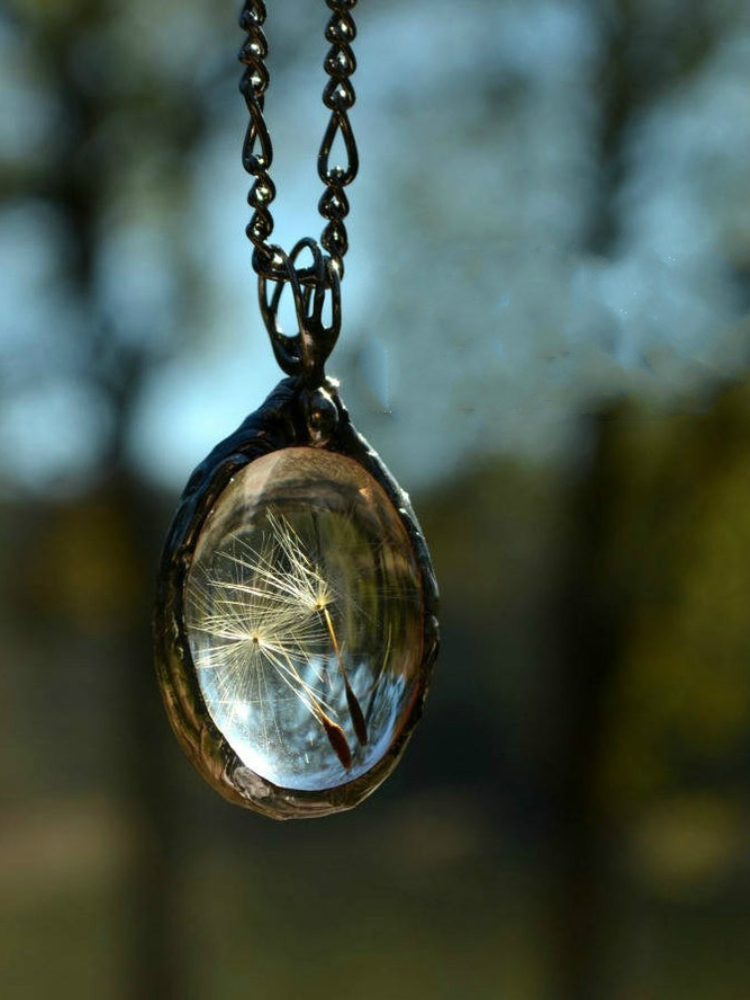 Vintage Dandelion Grass Pendant Necklace