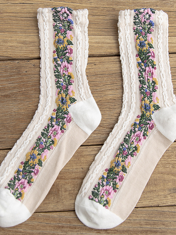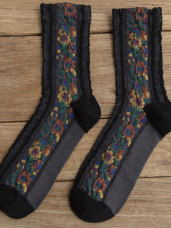 Vintage Floral Jacquard Cozy Socks