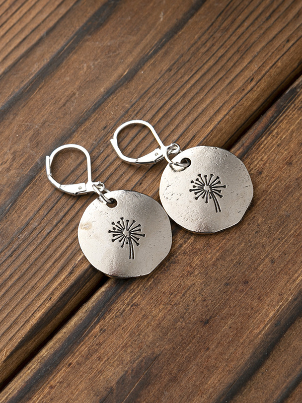 Vintage Unique Dandelion Carving Earrings