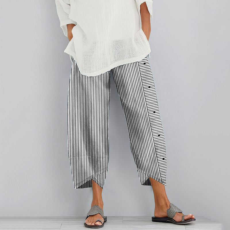 Women'S Retro Striped Printed Loose Linen Casual Pants