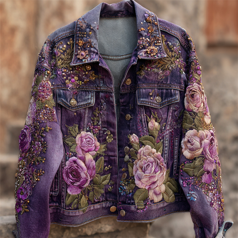 Vintage Purple Lavender And Floral Embroidered Linen Long Sleeve Shirt