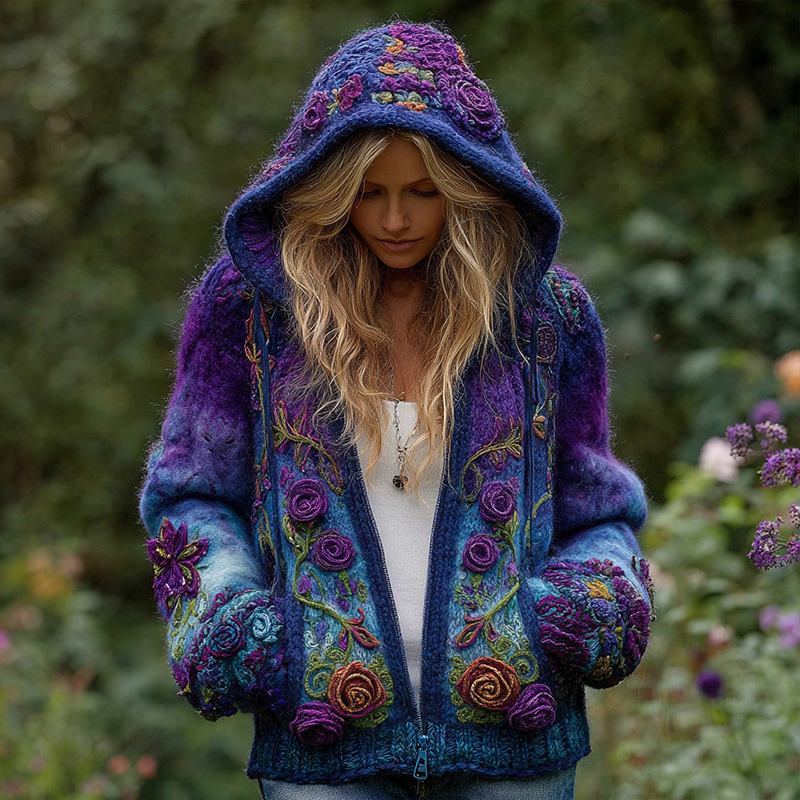 Women's Boho Floral Embroidery Purple Gradient Cotton Flowing Half Elastic Skirt