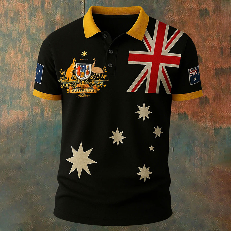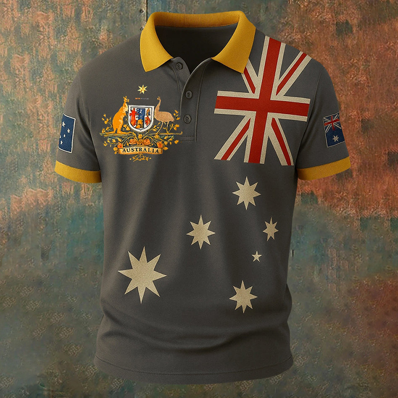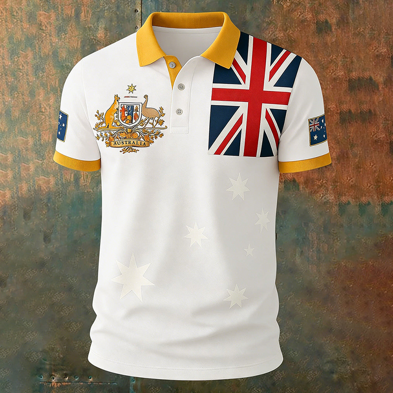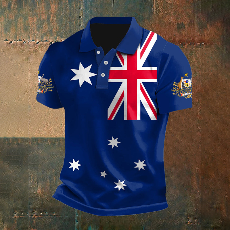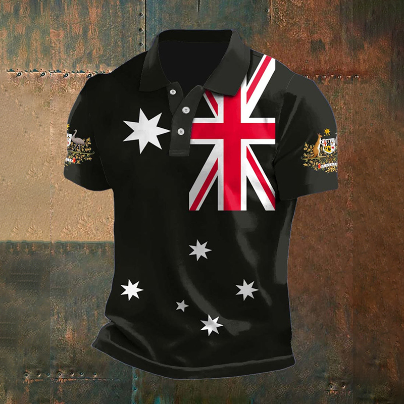 Vintage Australian Flag Crest Printed Casual Cotton Short Sleeve Polo Shirt