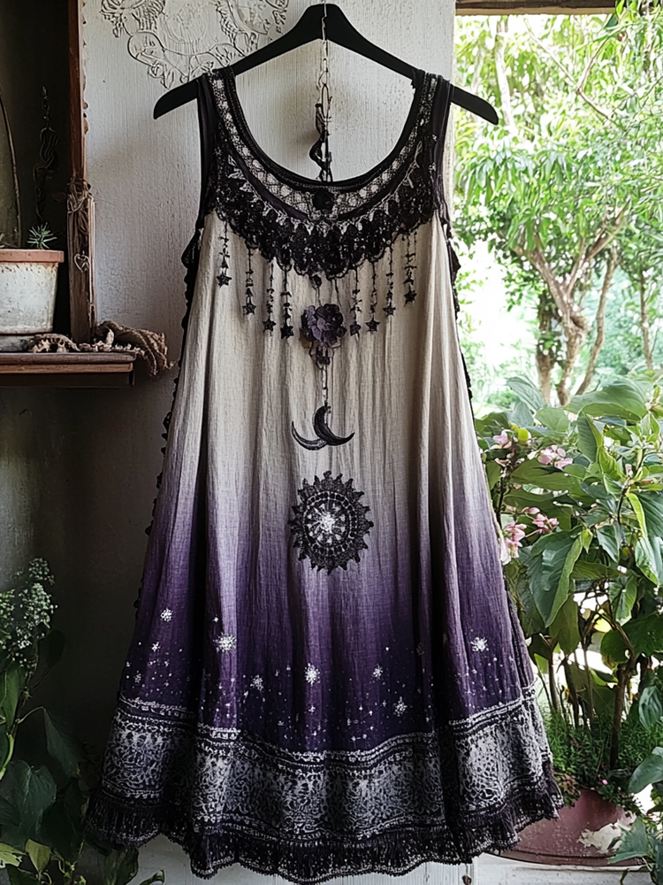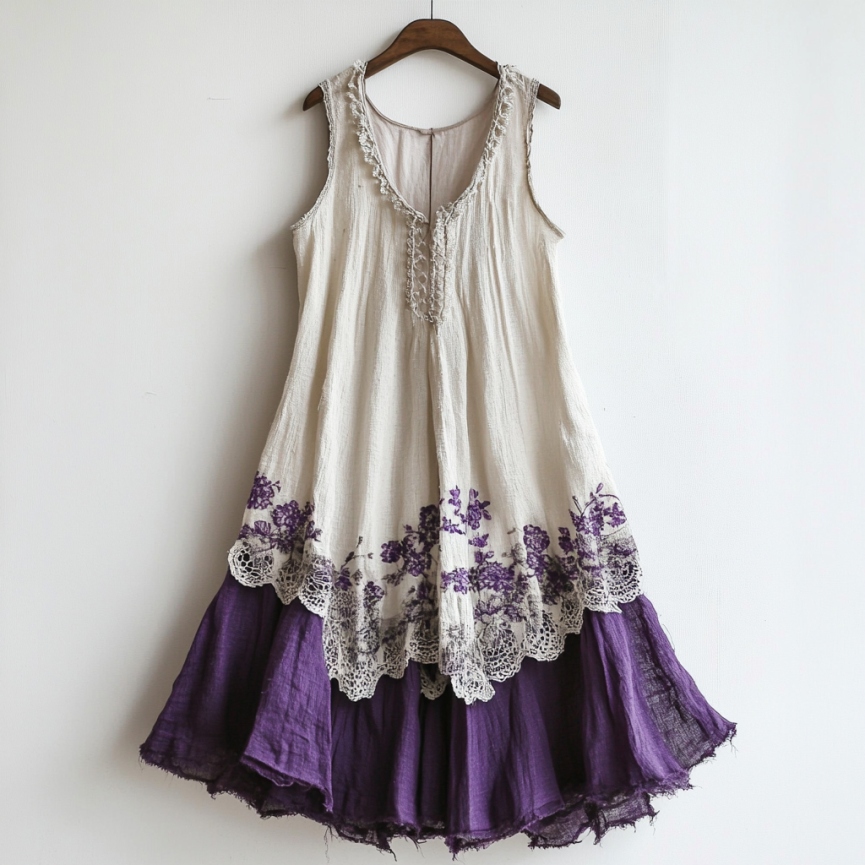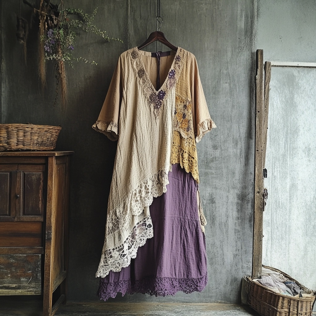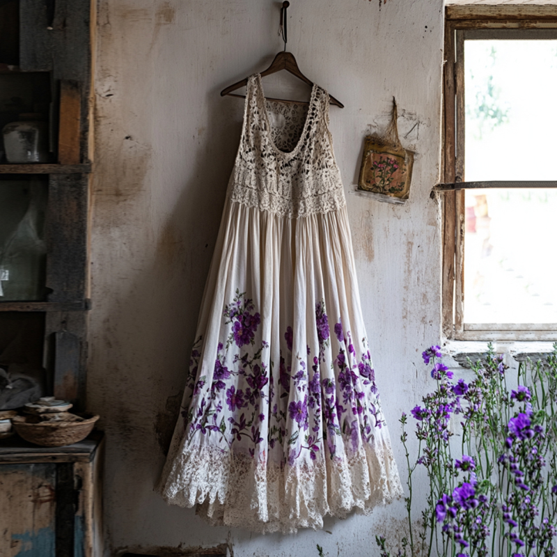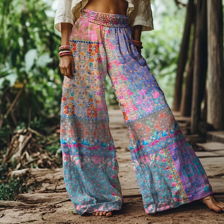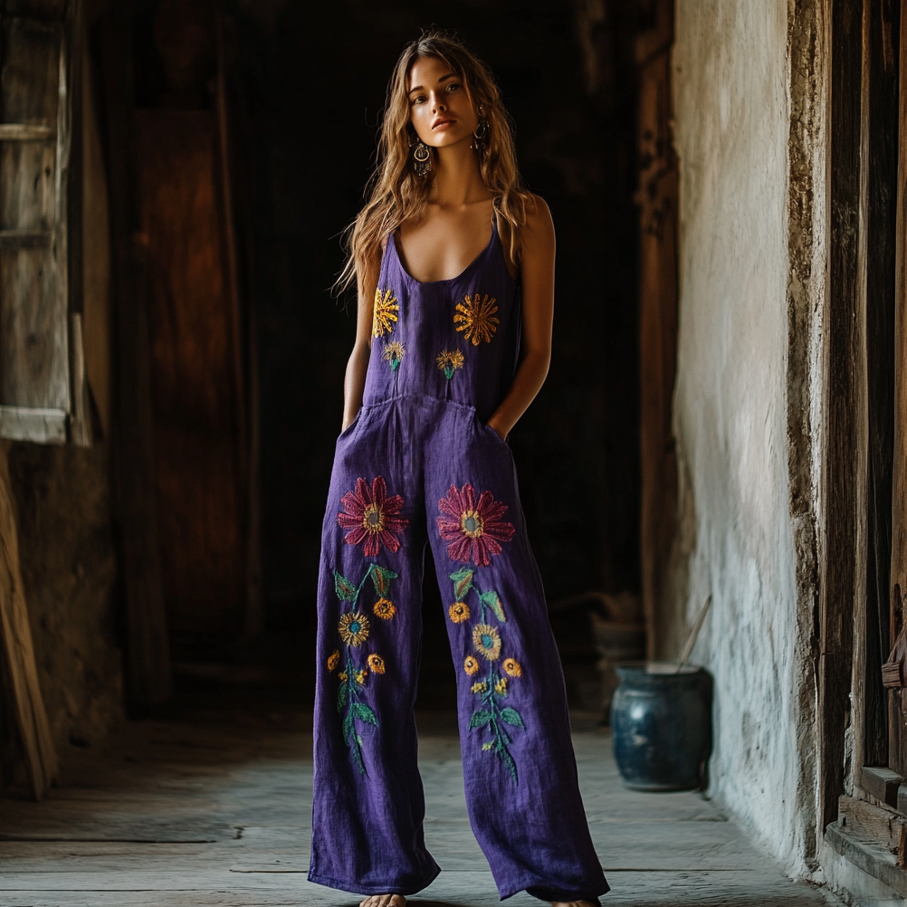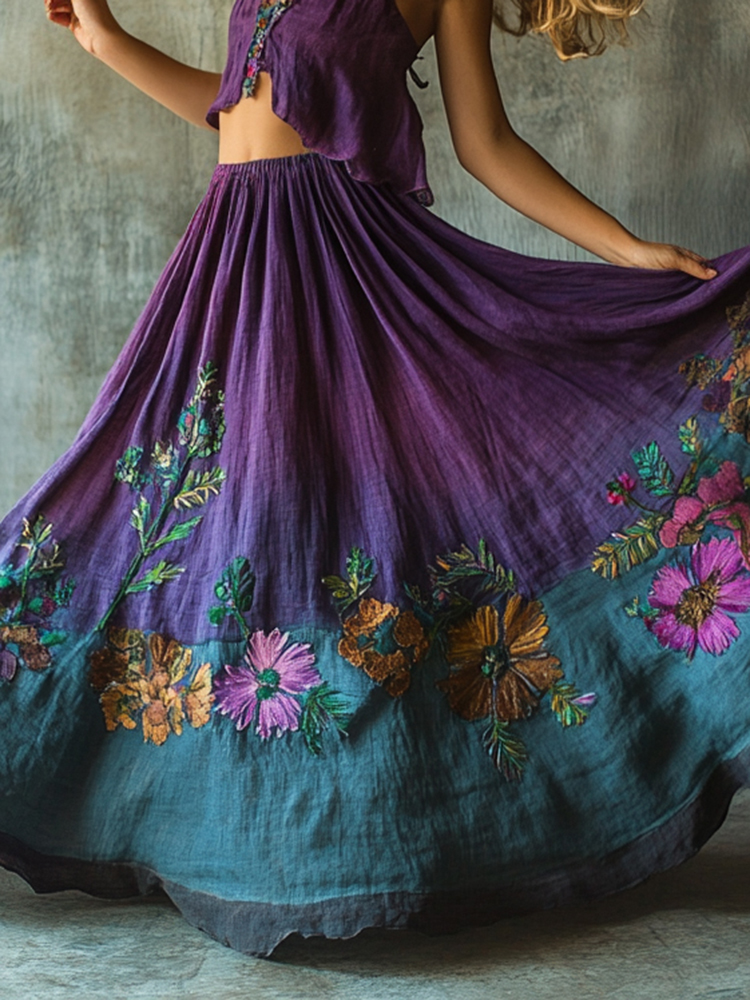 Bohemian Style Linen Floral Art Print Long Sleeve Shirt