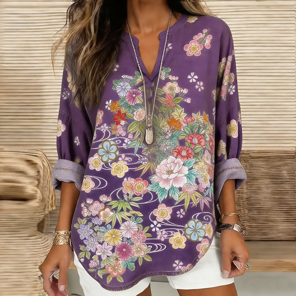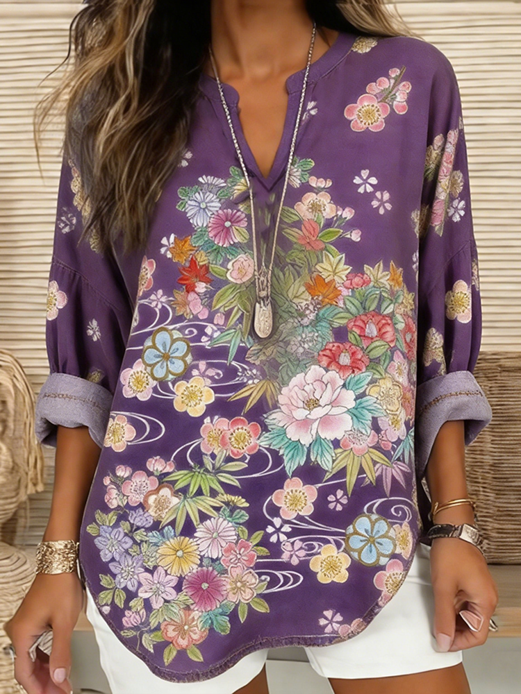 Japanese Art Retro Plant Flower Printed Women's Top