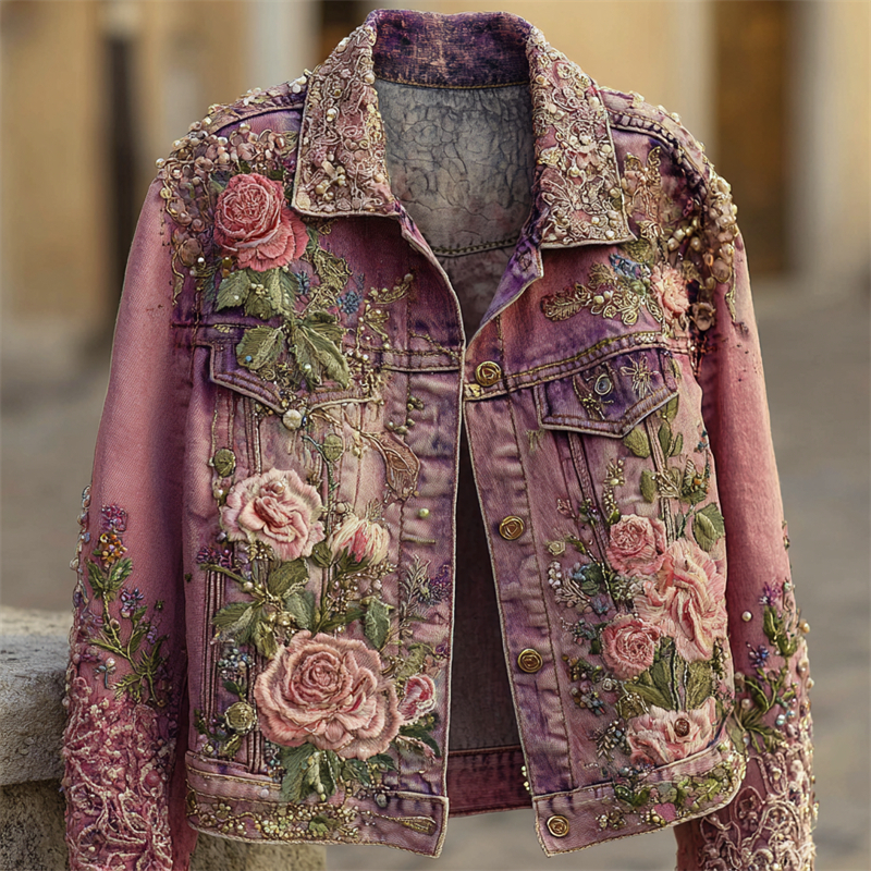 Bohemian Style Pink Rose Vintage Zip-up Hoodie