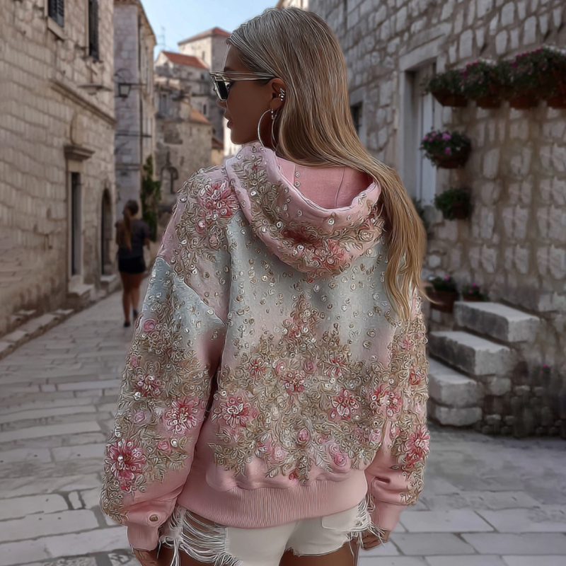 Women's Floral Printed Boho Casual Hooded Sweatshirt