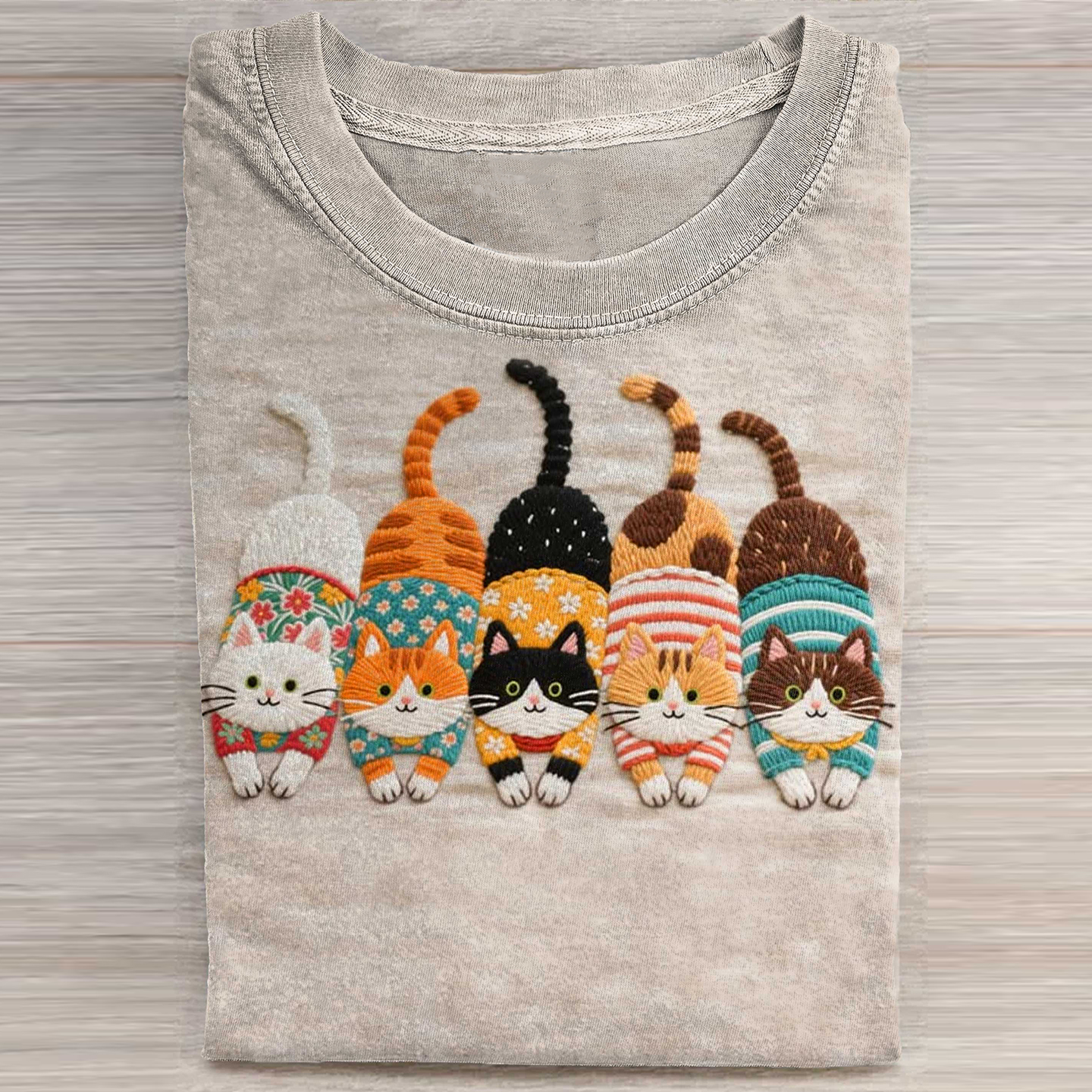 Women's Casual Funny Denim Cat Print T-shirt