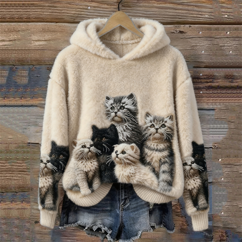Lovely Fuzzy Cats Art Cozy Plush Hoodie