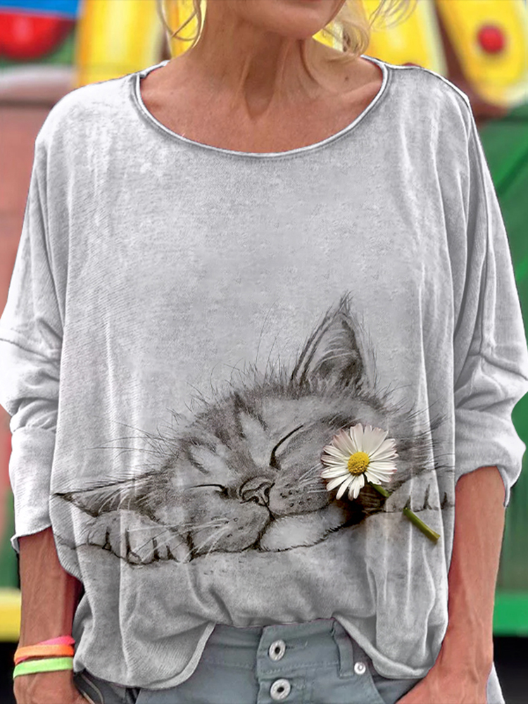 Funny Cat Print Casual Comfortable Sweatshirt