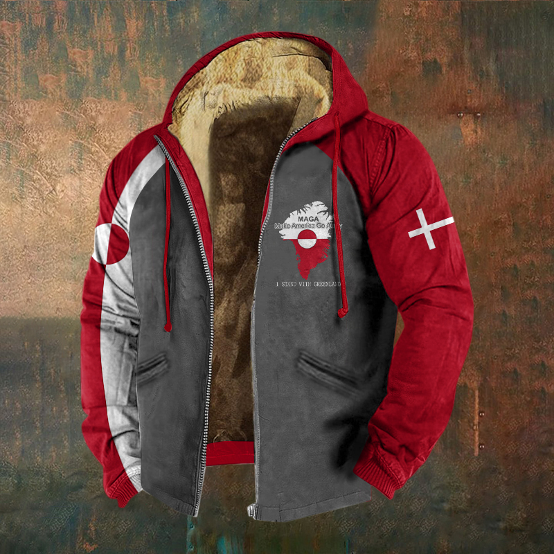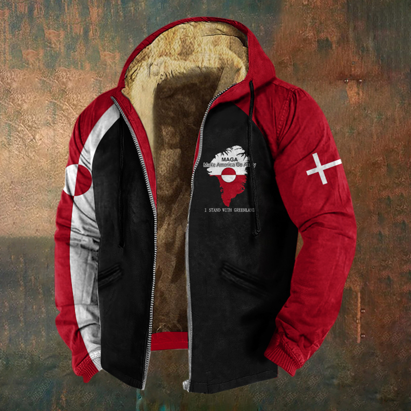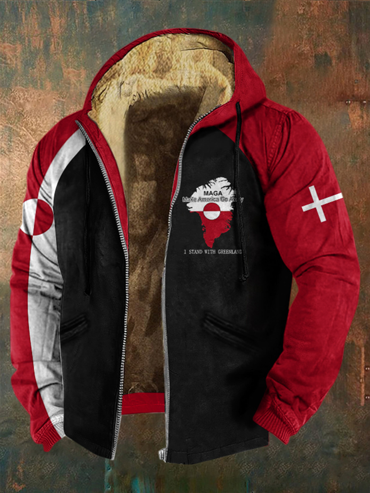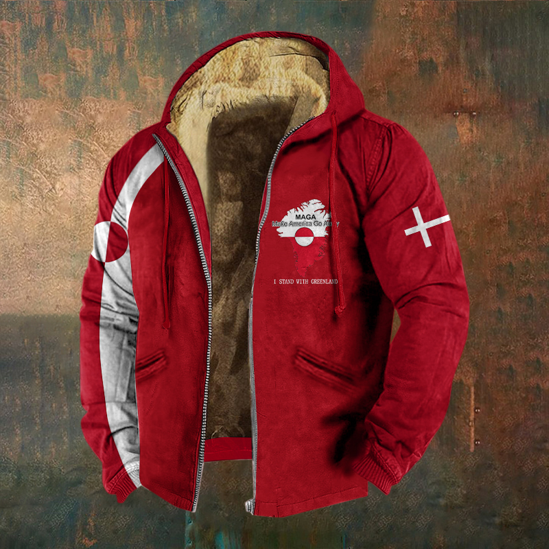 Men's Retro Greenland Not For Sale Print Zipper Casual Jacket