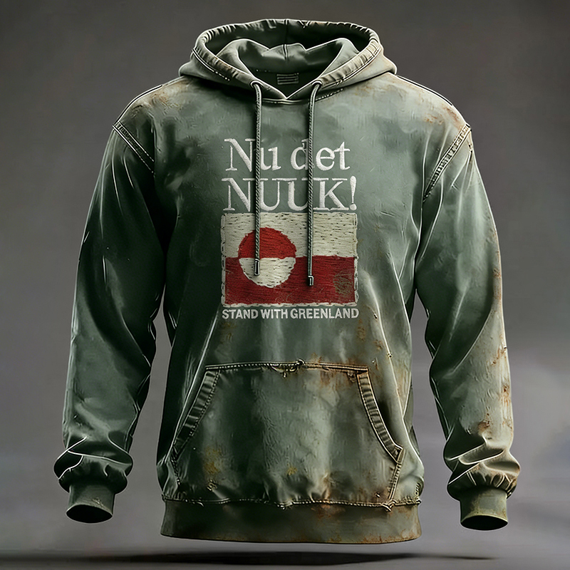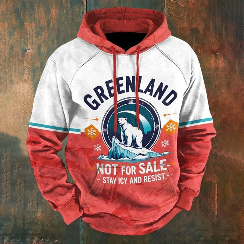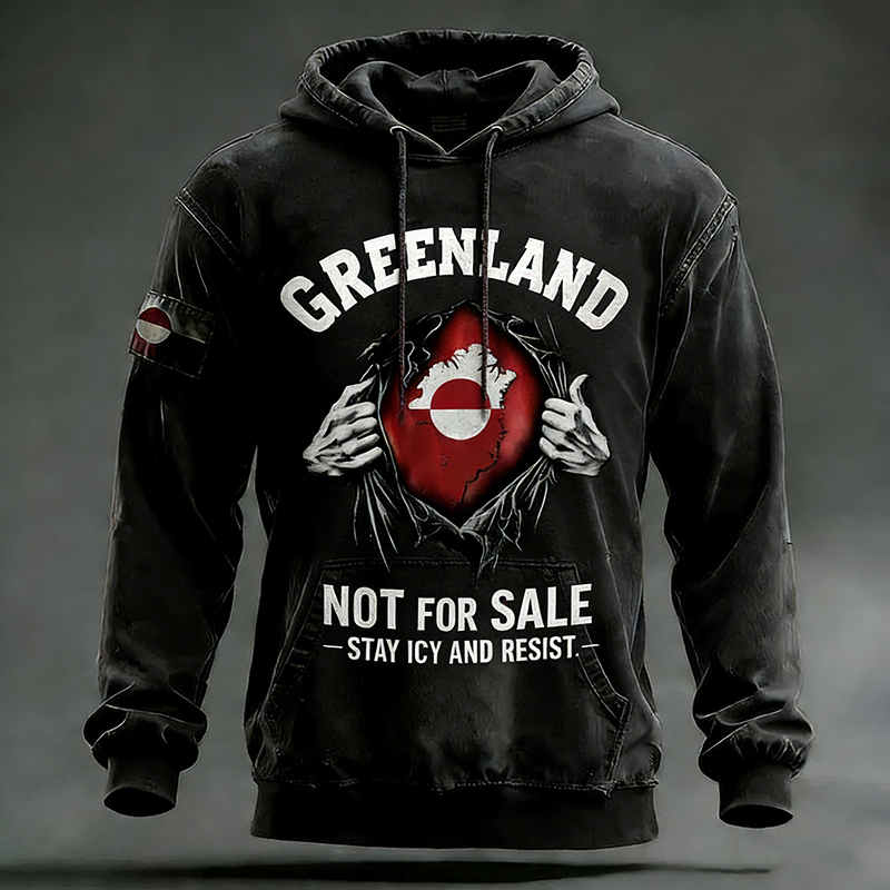 Men's Retro Greenland Not For Sale Print Casual Hoodie