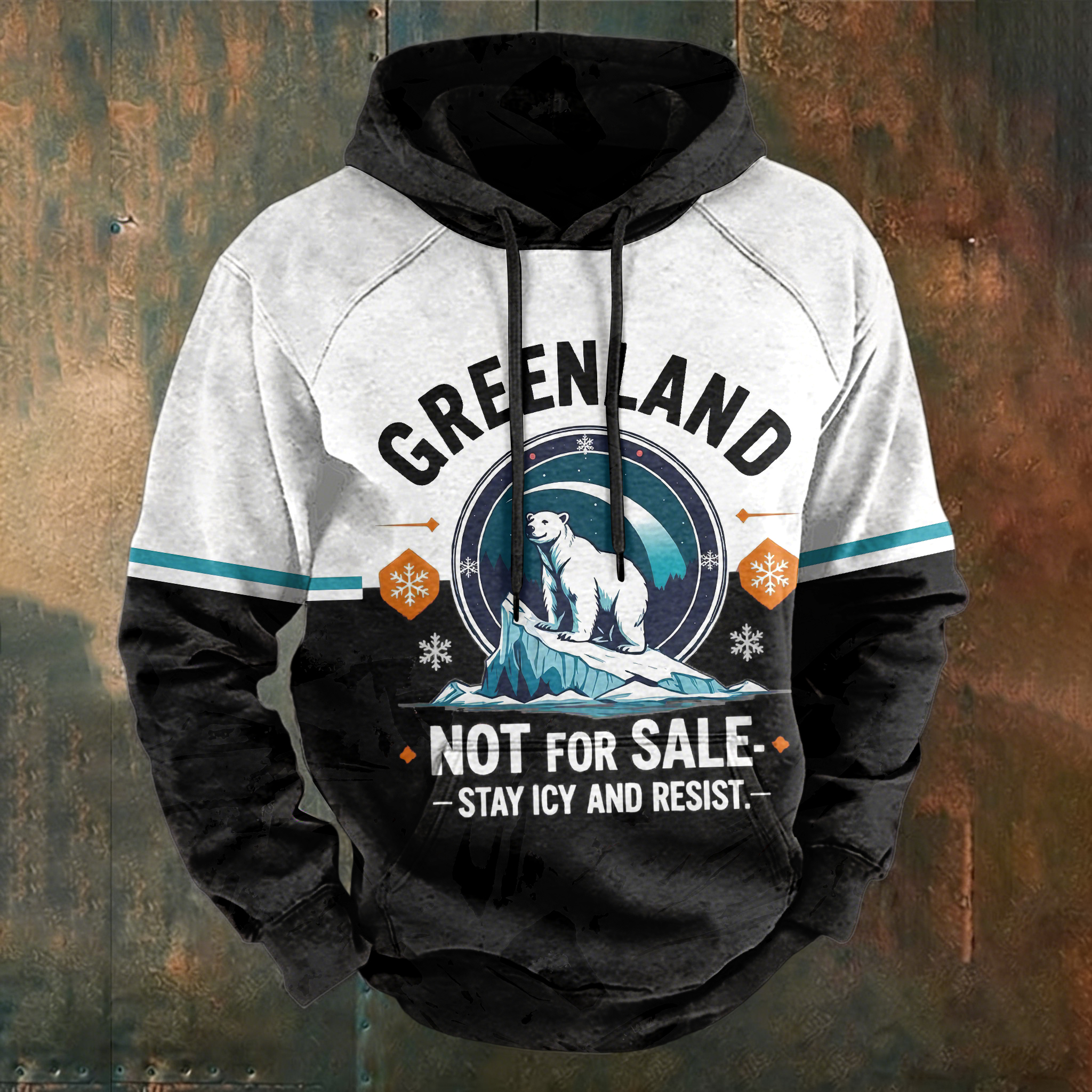 Men's Retro Greenland Not For Sale Stay Icy And Resist Print Hoodie