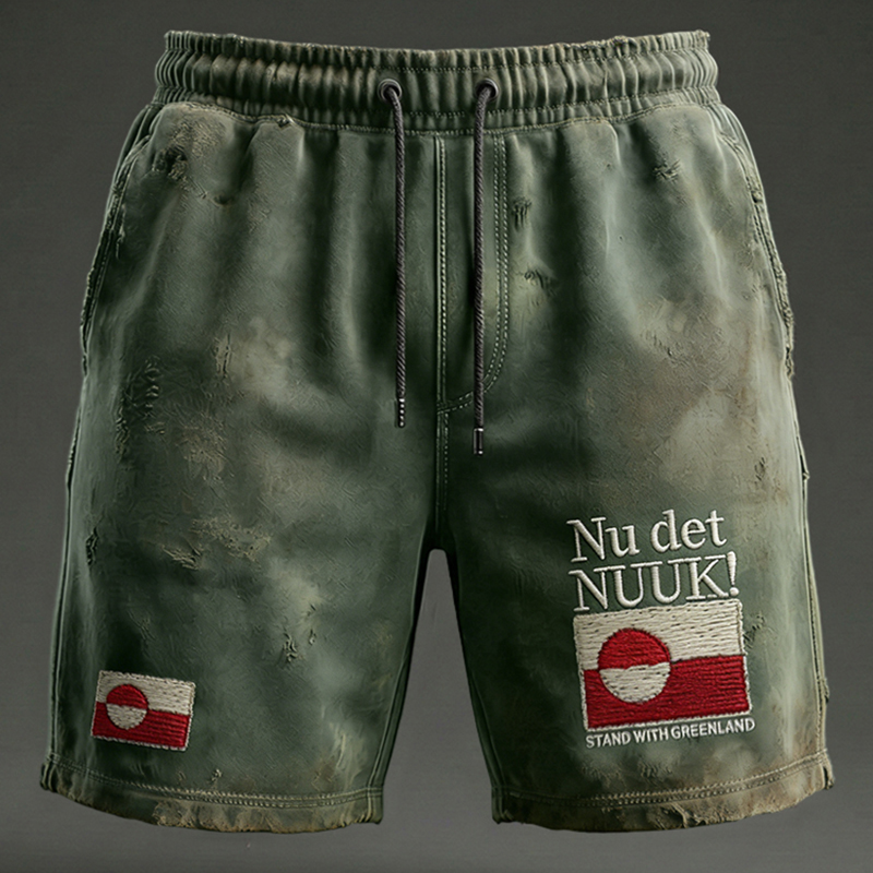 Men's Retro Greenland Not For Sale Print Casual Shorts