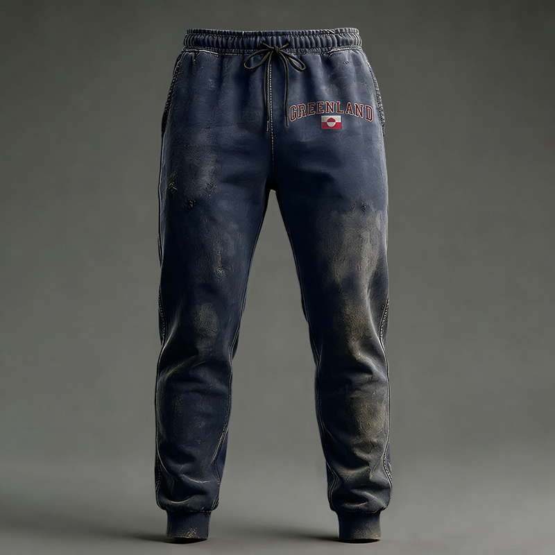 Men's Greenland Embroidered Pattern Casual Sports Pants