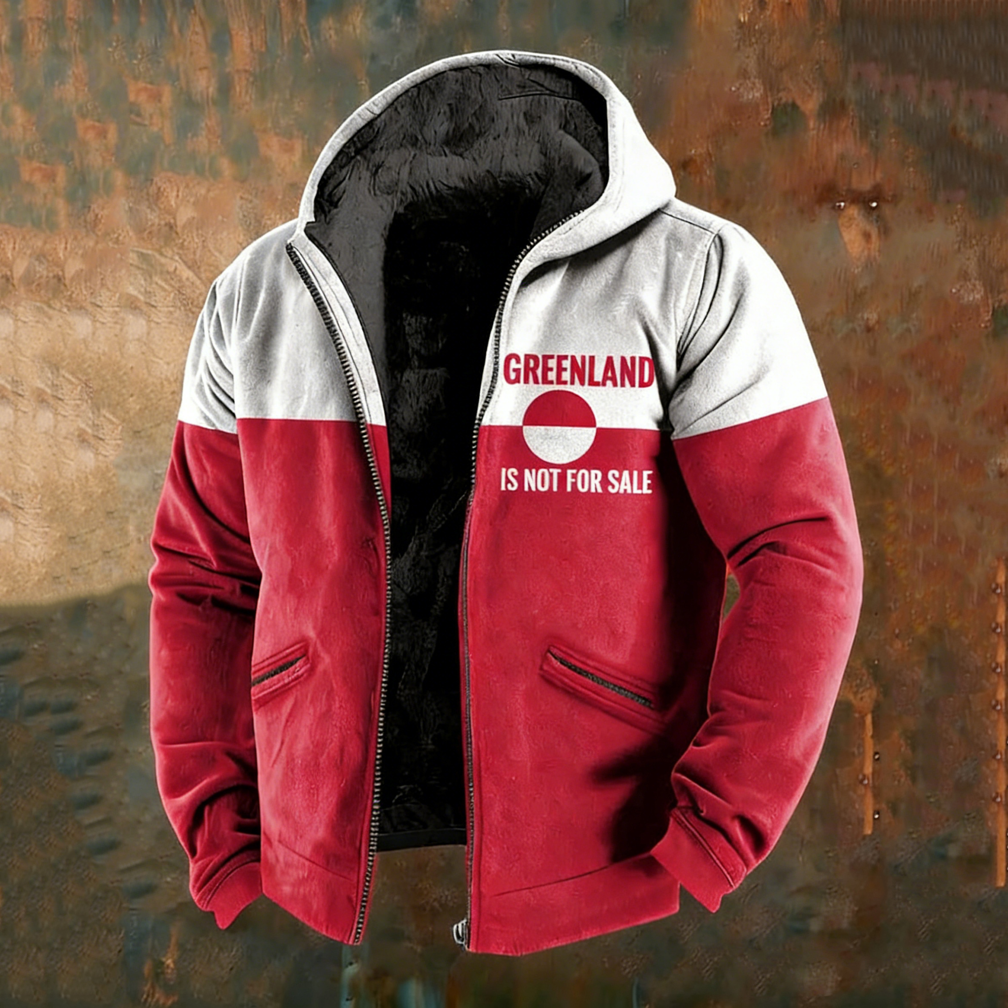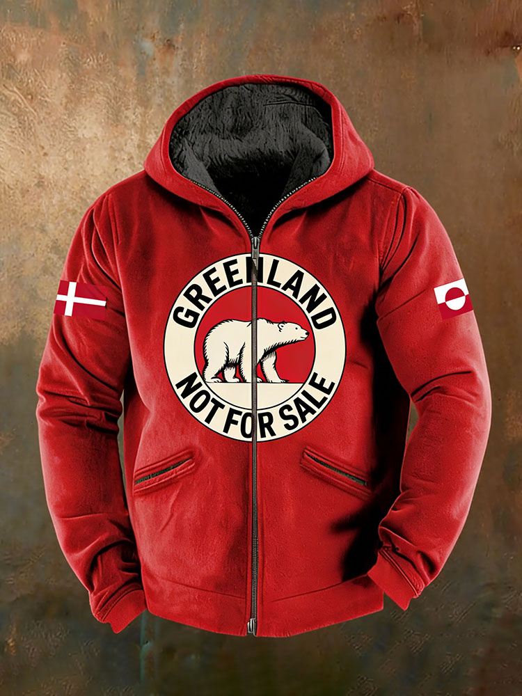 Men's Retro Greenland Not For Sale Print Zipper Casual Jacket