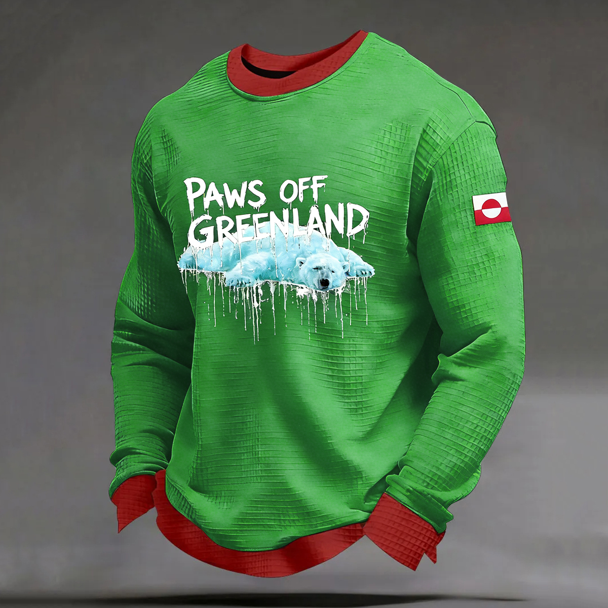 Men's Polar Bear Greenland Flag Pattern Color Block Sweatshirt
