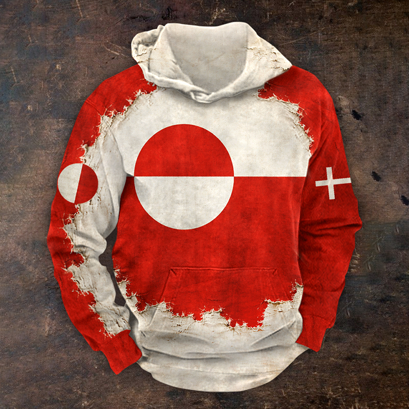 Men's Retro Greenland Flag Print Casual Hoodie