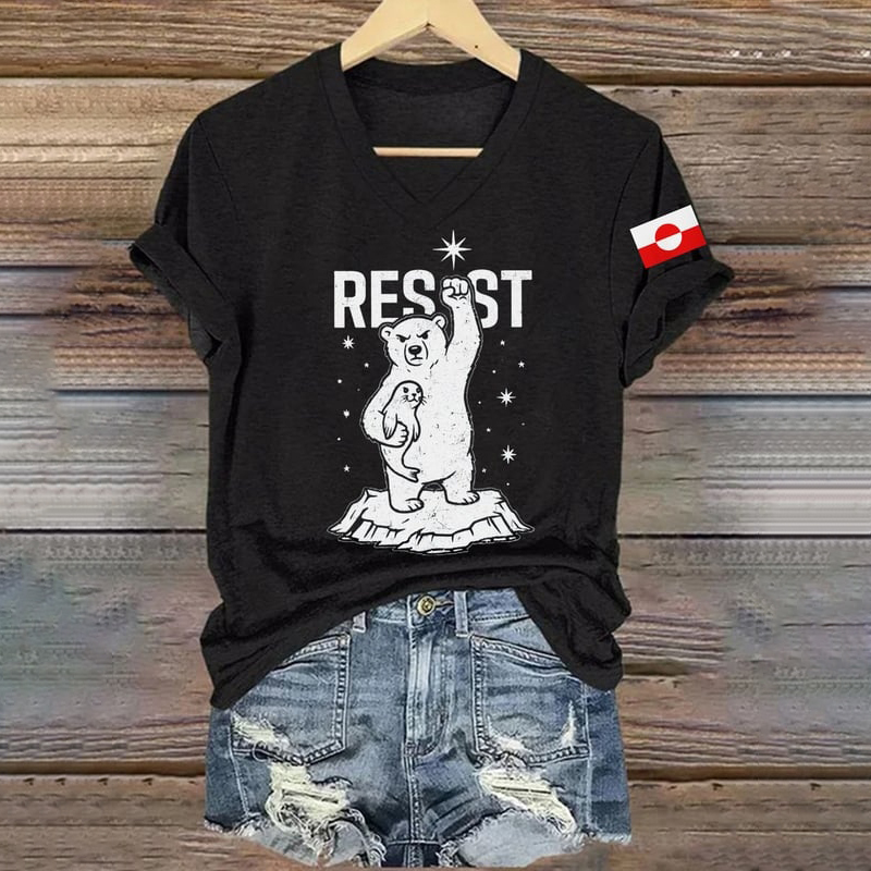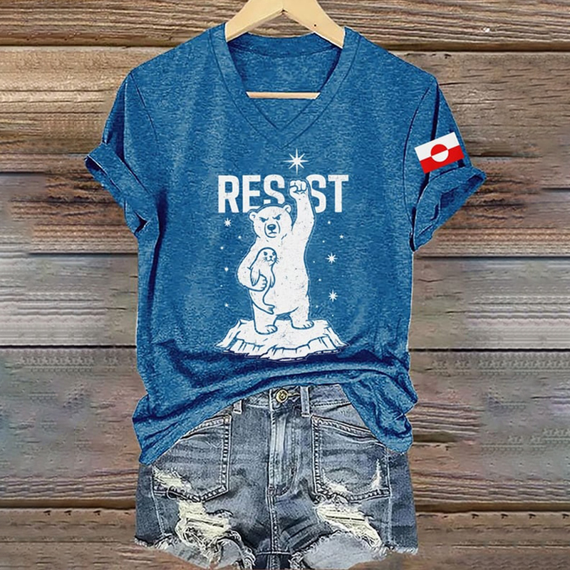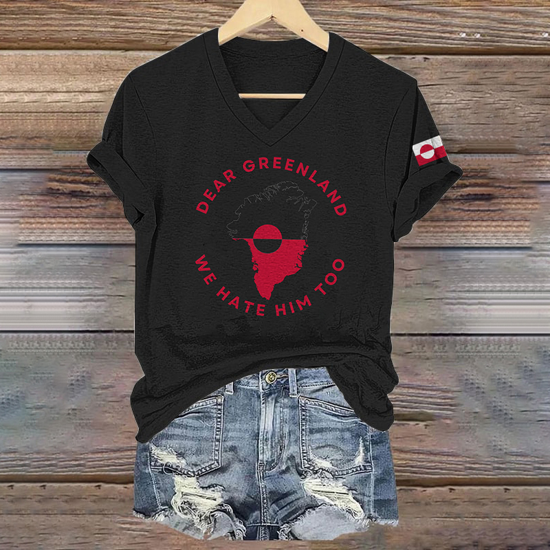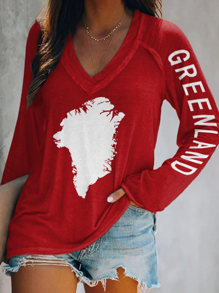 Women's Greenland Print V-neck Short Sleeve T-shirt