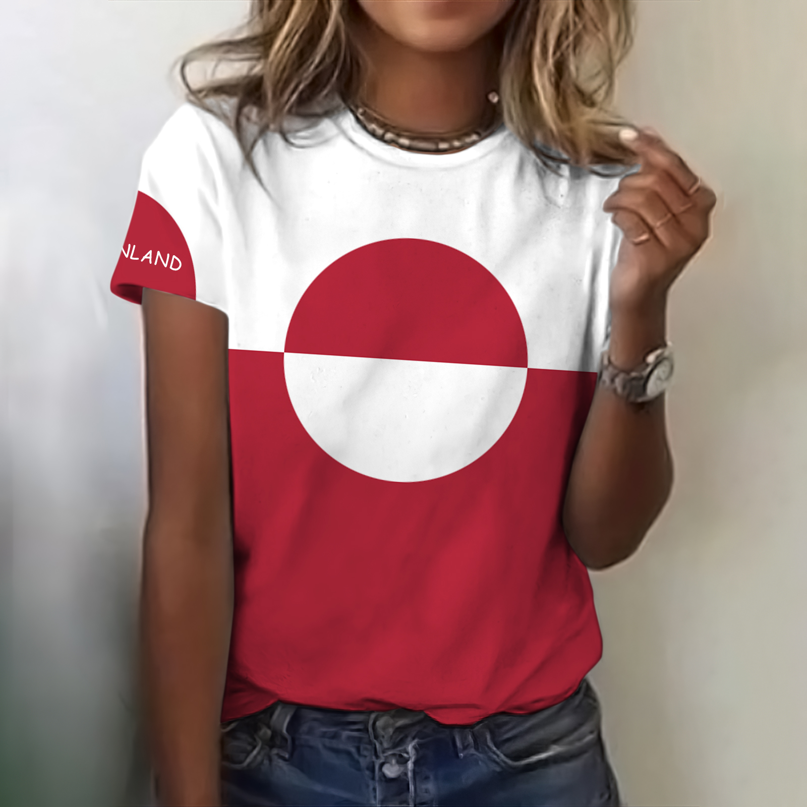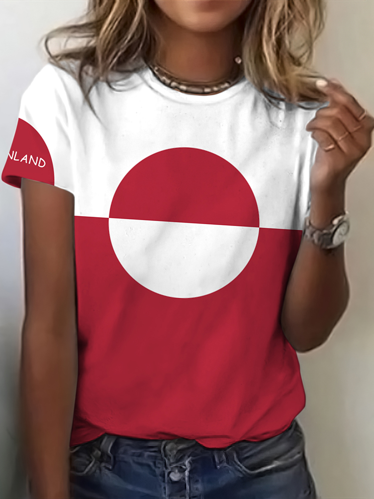Women's Greenland Flag Print Crew Neck Short Sleeved T-shirt