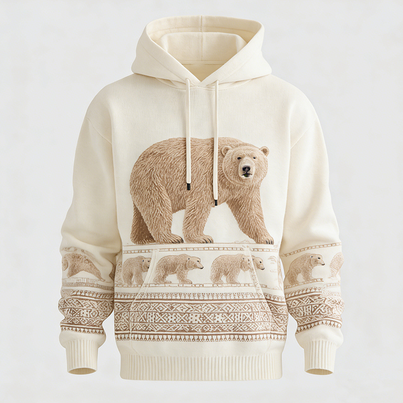 Men's Retro Polar Bear Jacquard Knit Hooded Sweatshirt
