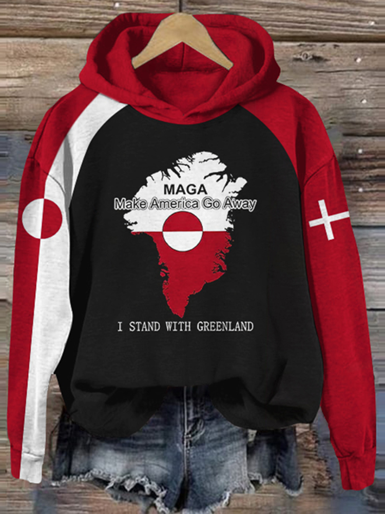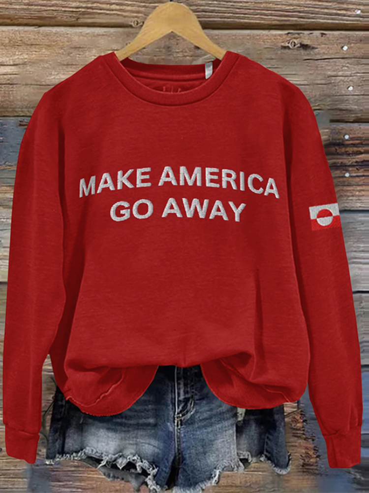 Make America Go Away And Stand With Greenland Printed Casual Sweatshirt
