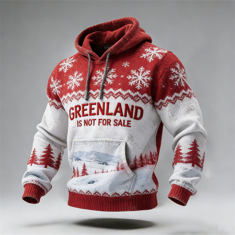 Men's Retro Greenland Not For Sale Print Casual Hoodie