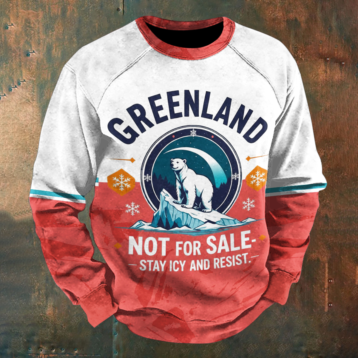 Men's Retro Greenland Not For Sale Stay Icy And Resist Print Sweatshirt