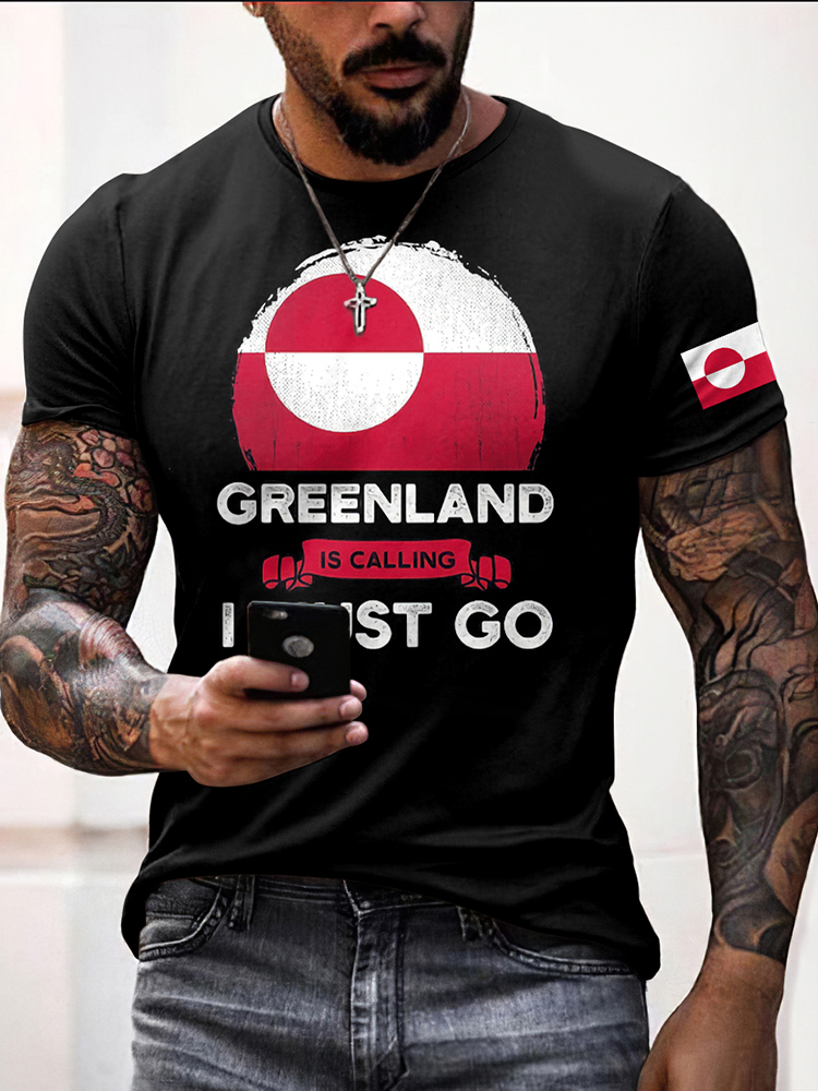 Men's Stand With Greenland Print Casual Short Sleeve T-shirt