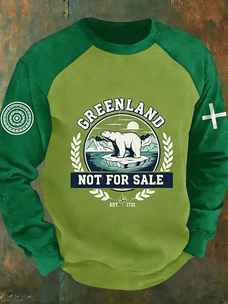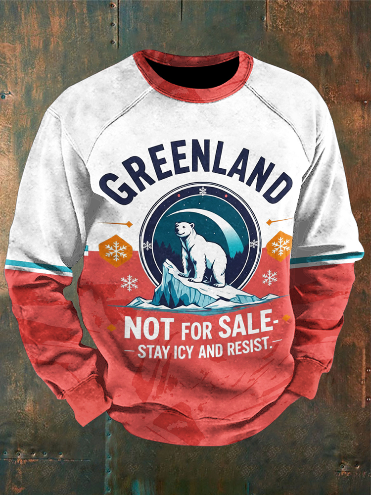 Men's Retro Greenland Not For Sale Print Casual Sweatshirt
