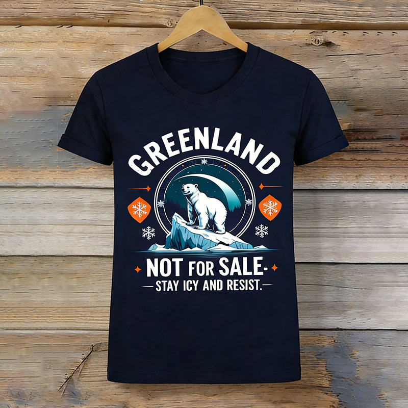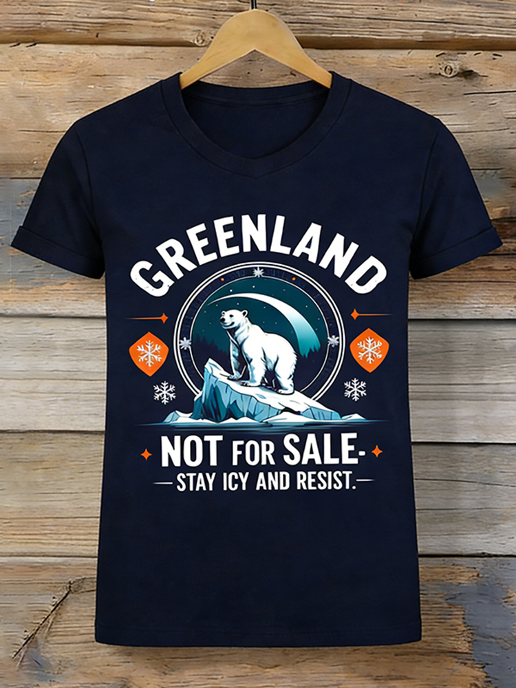 Women's Retro Greenland Not For Sale Stay Icy And Resist Print T-shirt