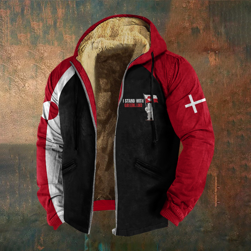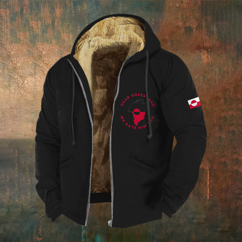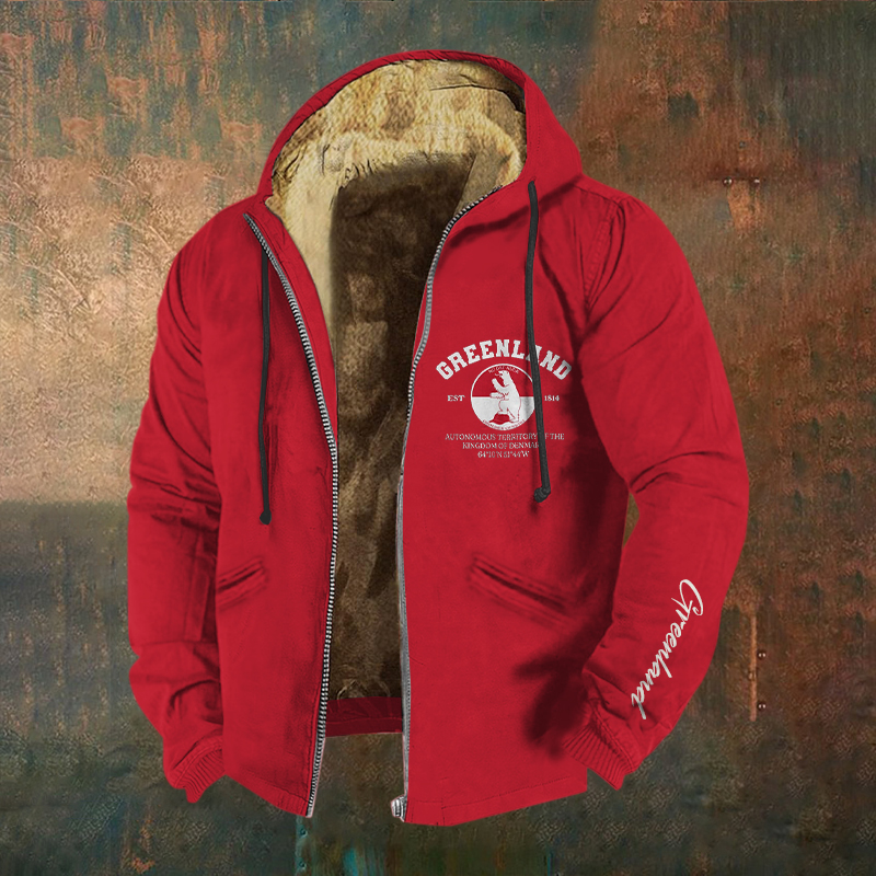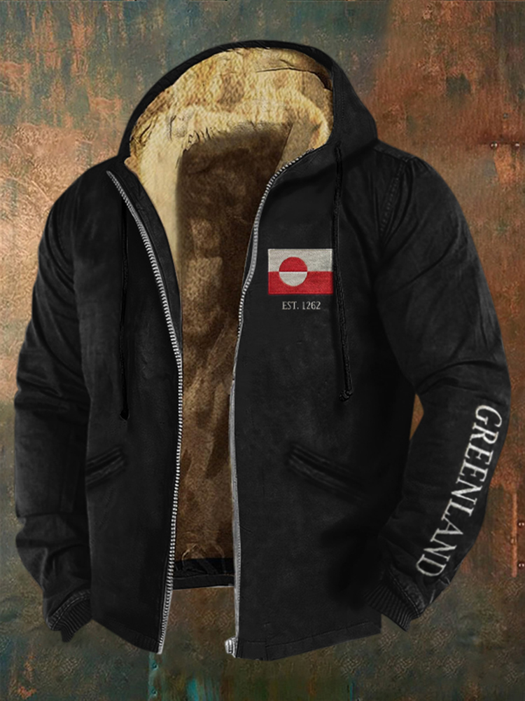 Men's Greenland Print Zipper Casual Hooded Jacket