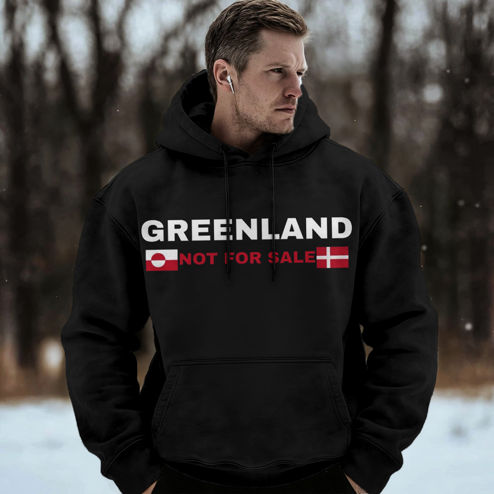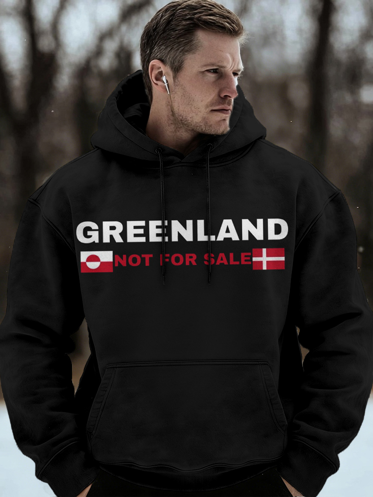 Men's Retro Greenland Not For Sale Print Casual Hoodie