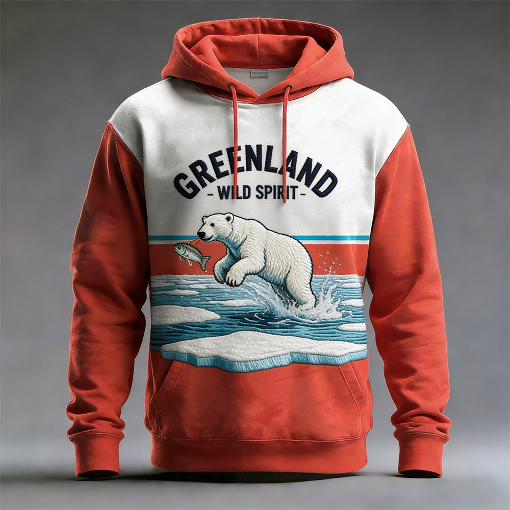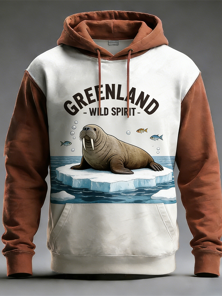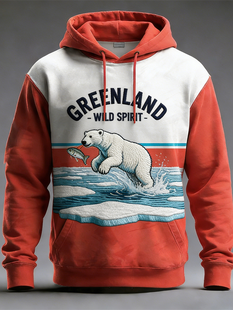 Greenland Nature Animal Print Vintage Men's Hooded Sweatshirt
