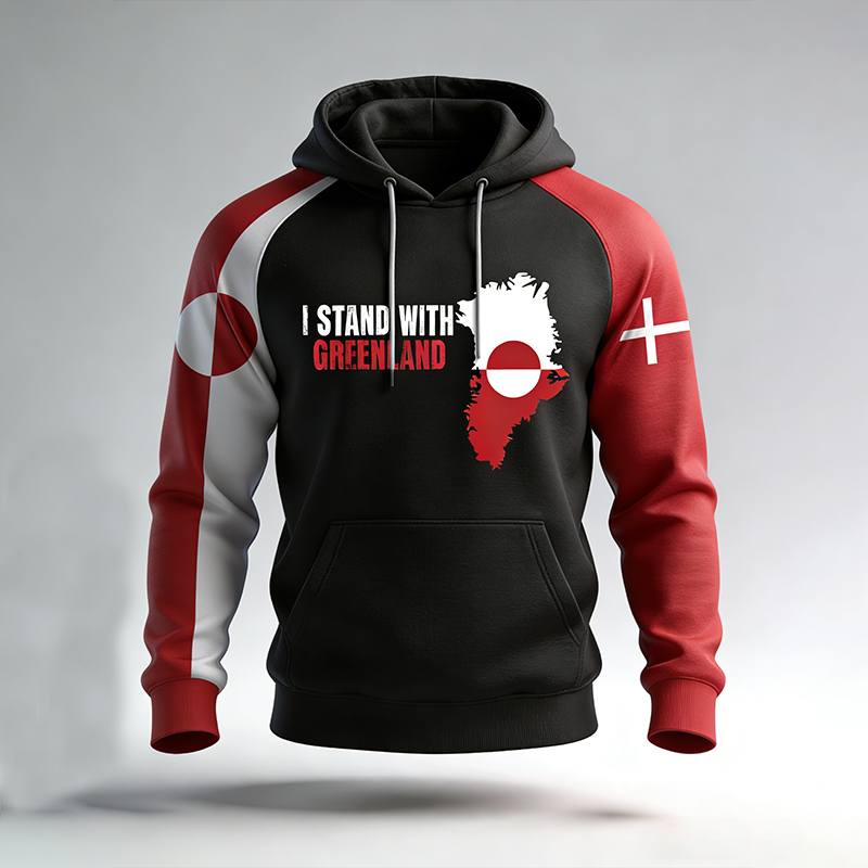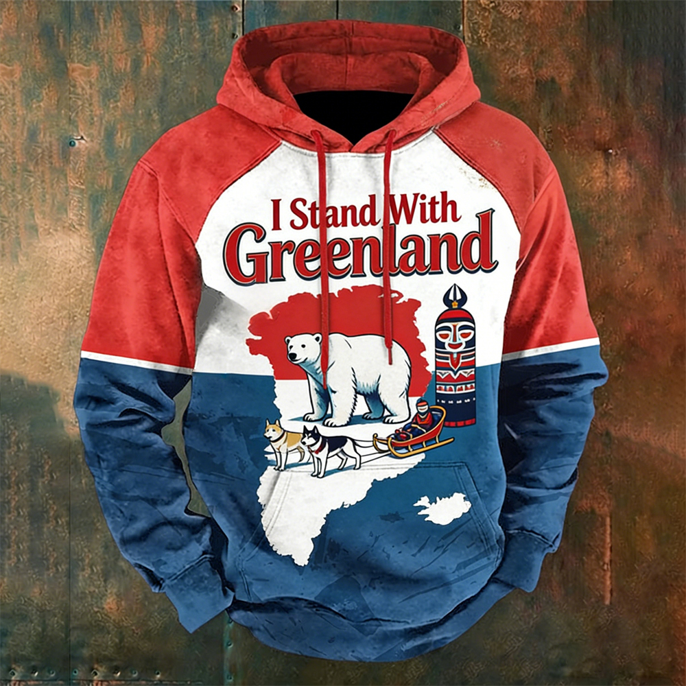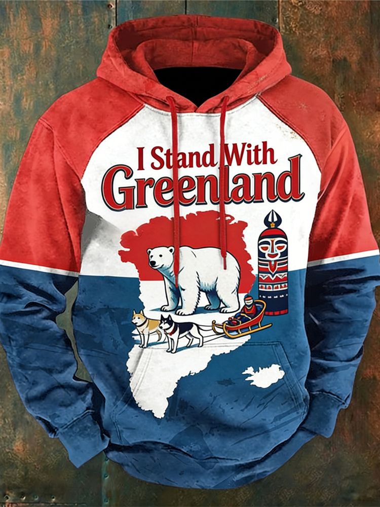 I Stand With Greenland Slogan Print Men's Hooded Sweatshirt