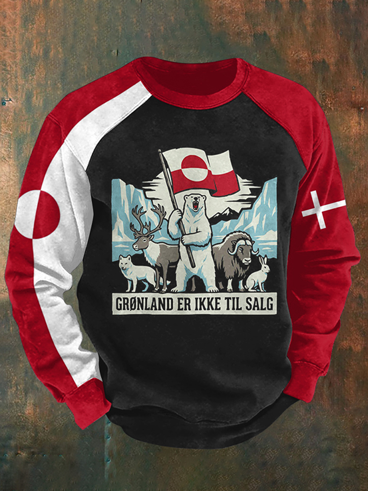 Men's Retro Greenland Not For Sale Print Casual Sweatshirt