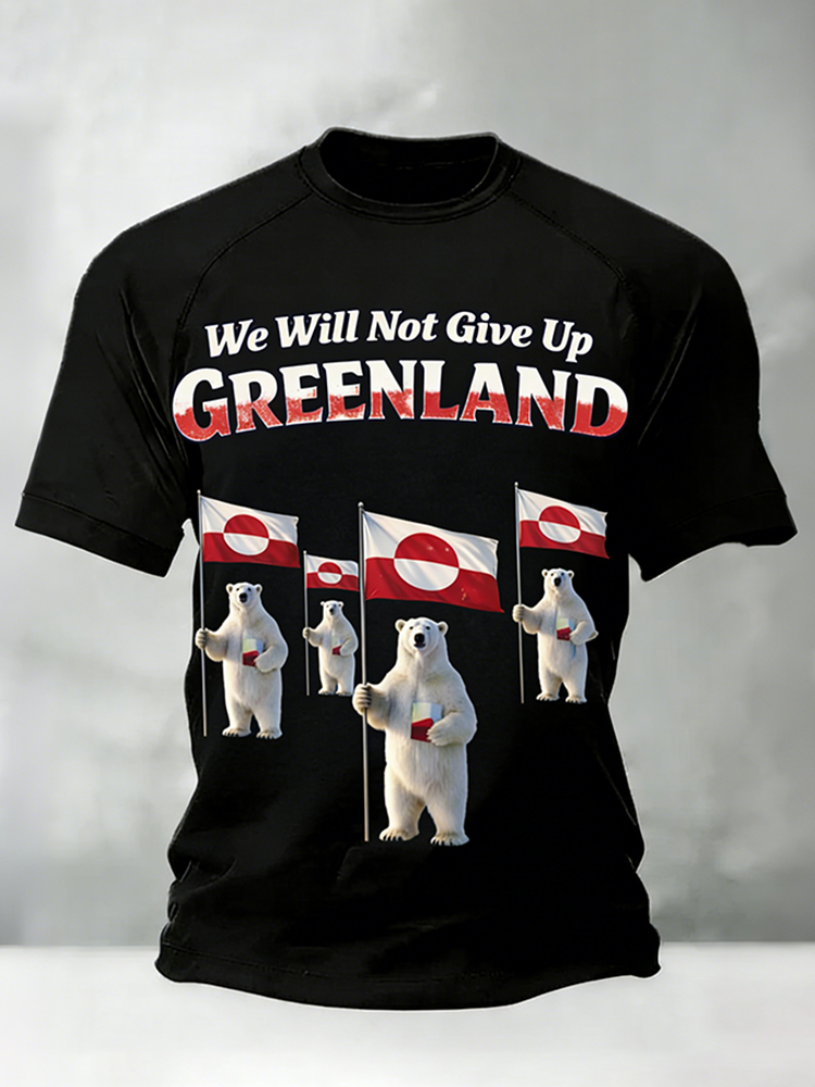 Don't Give Up On Greenland-printed Comfortable Men's T-shirts.