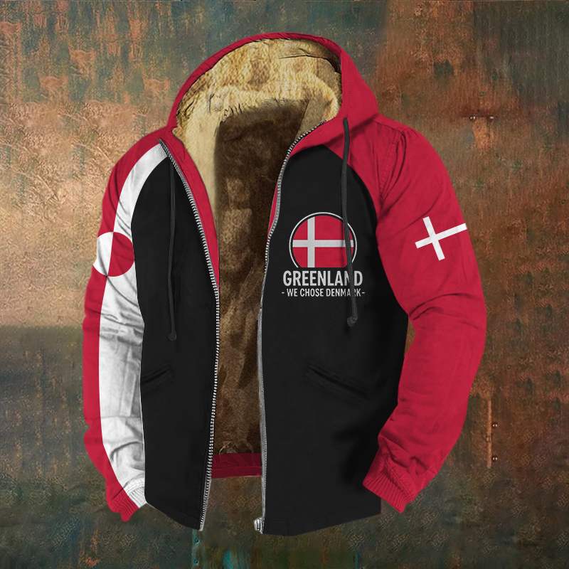 Men's Retro Greenland Flag Print Casual Zip-up Hoodie