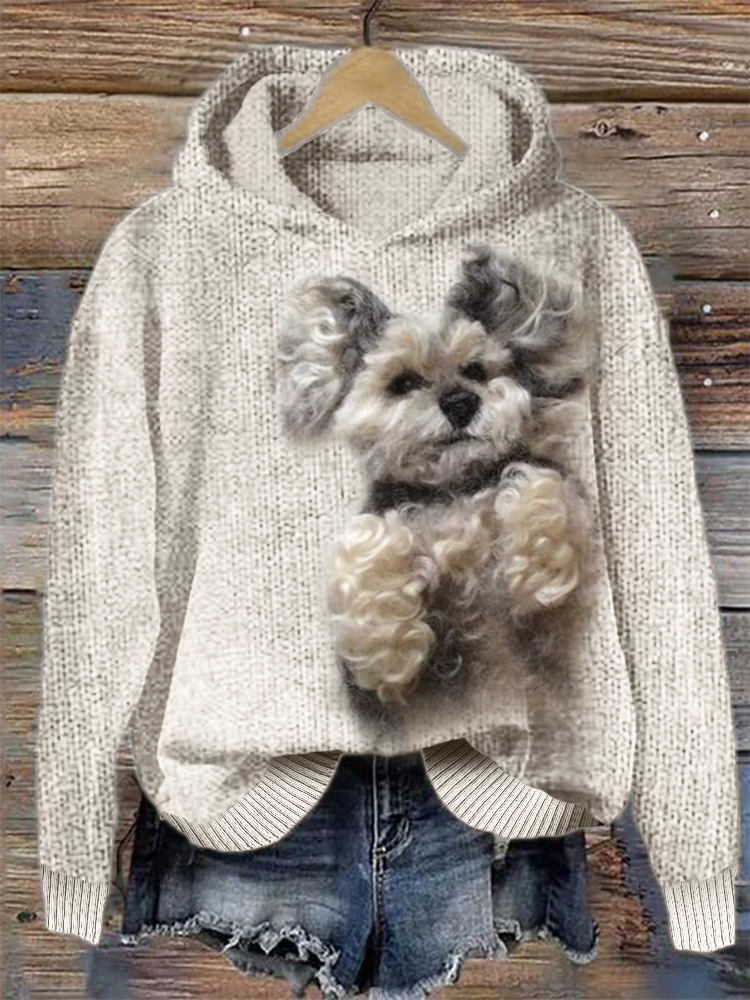 Fuzzy Curly Dog Cozy Knit Hoodie