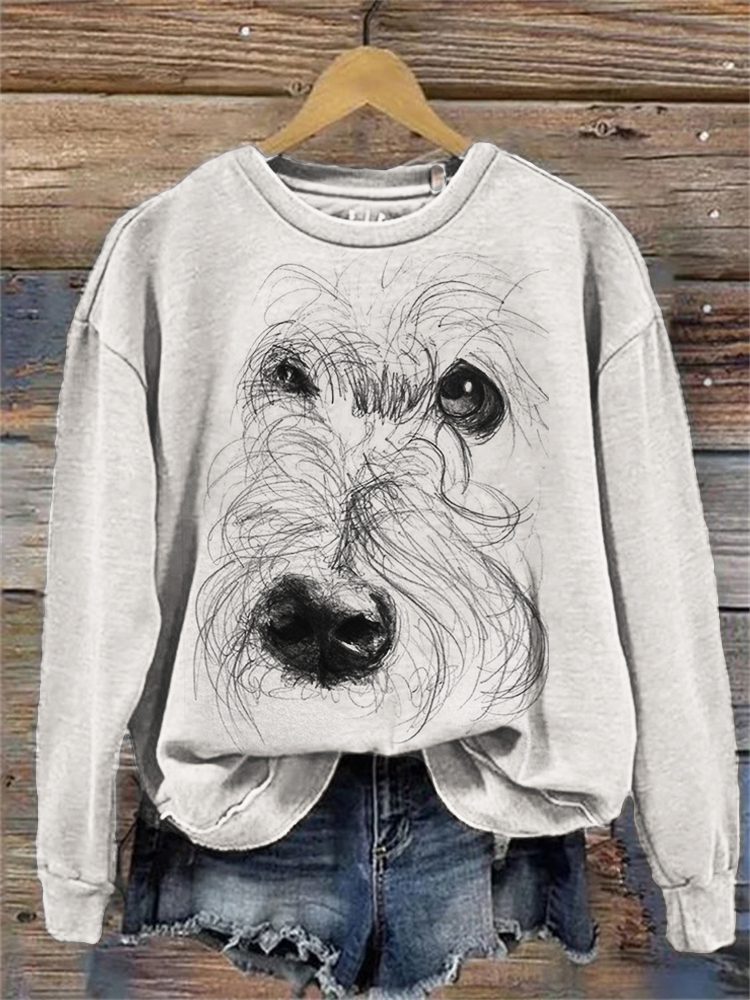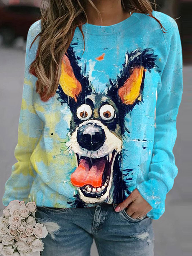Art Dog Print Long Sleeve Casual Sweatshirt