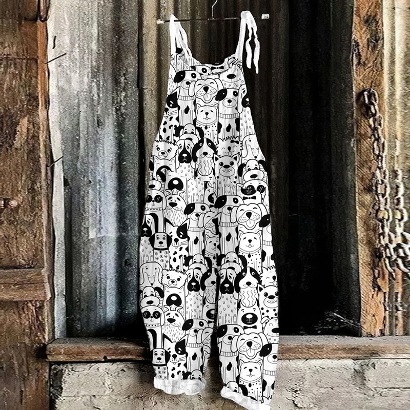 Dog Print Loose Casual Jumpsuit