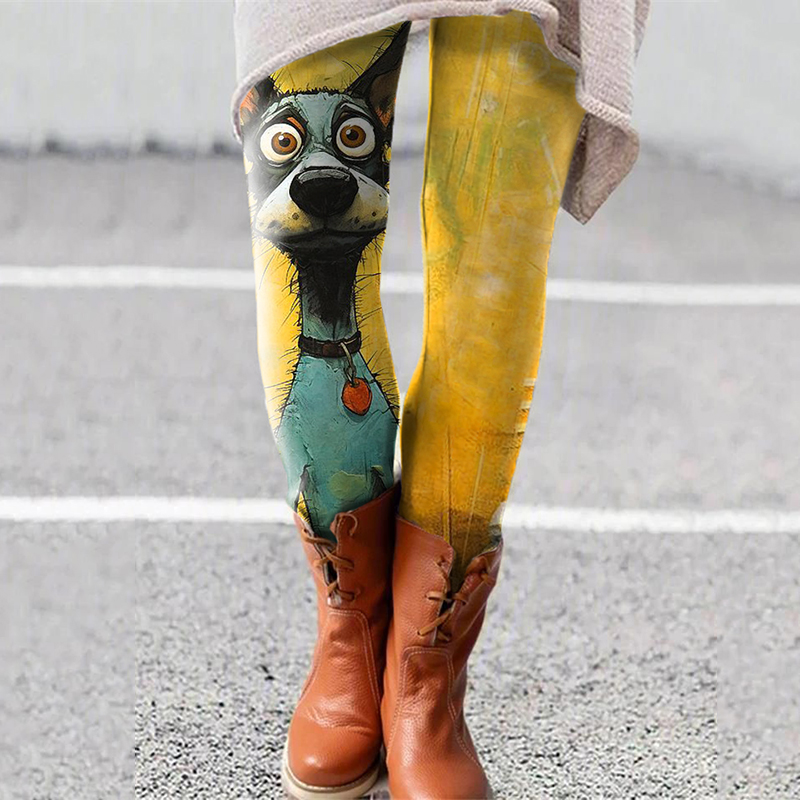 Art Dog Print Casual Leggings