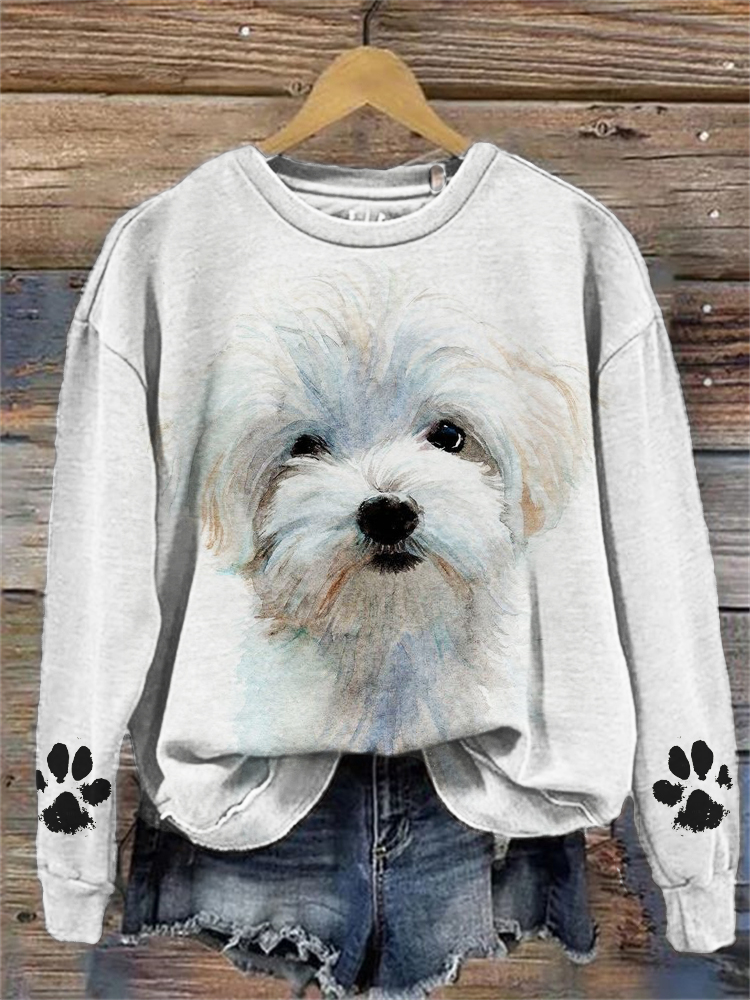 Dog Print Crew Neck Long Sleeve Sweatshirt