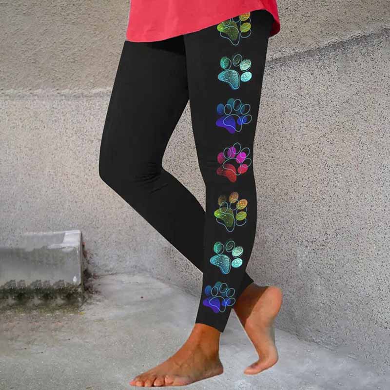 Colorful Dog Paw Print Casual Leggings