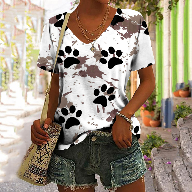 Causal Paw Splash Ink Print Short Sleeve T-Shirt