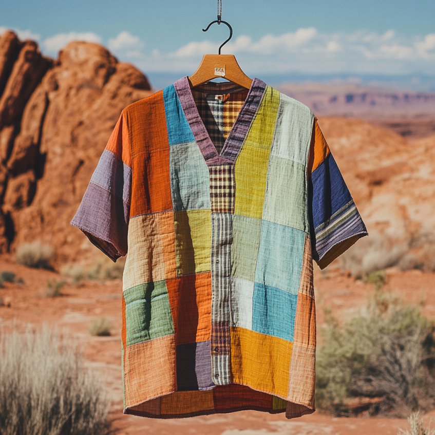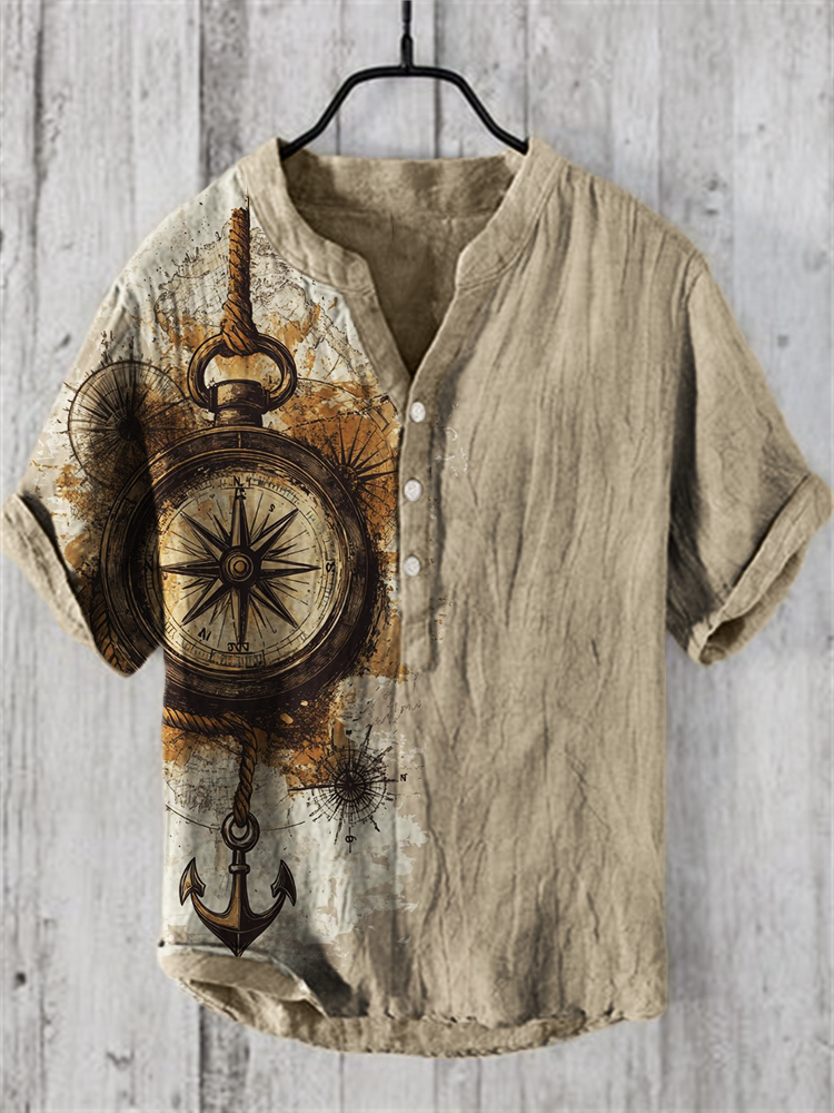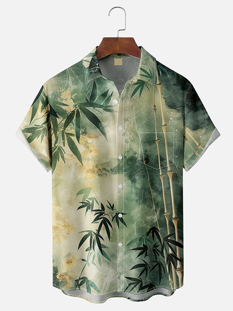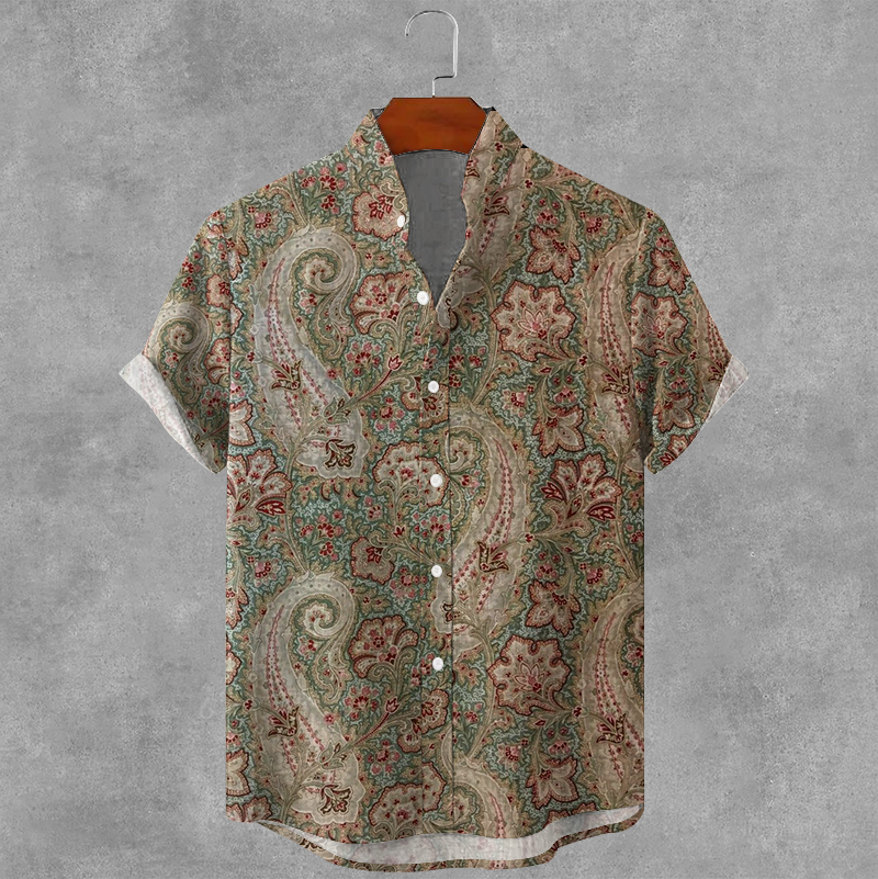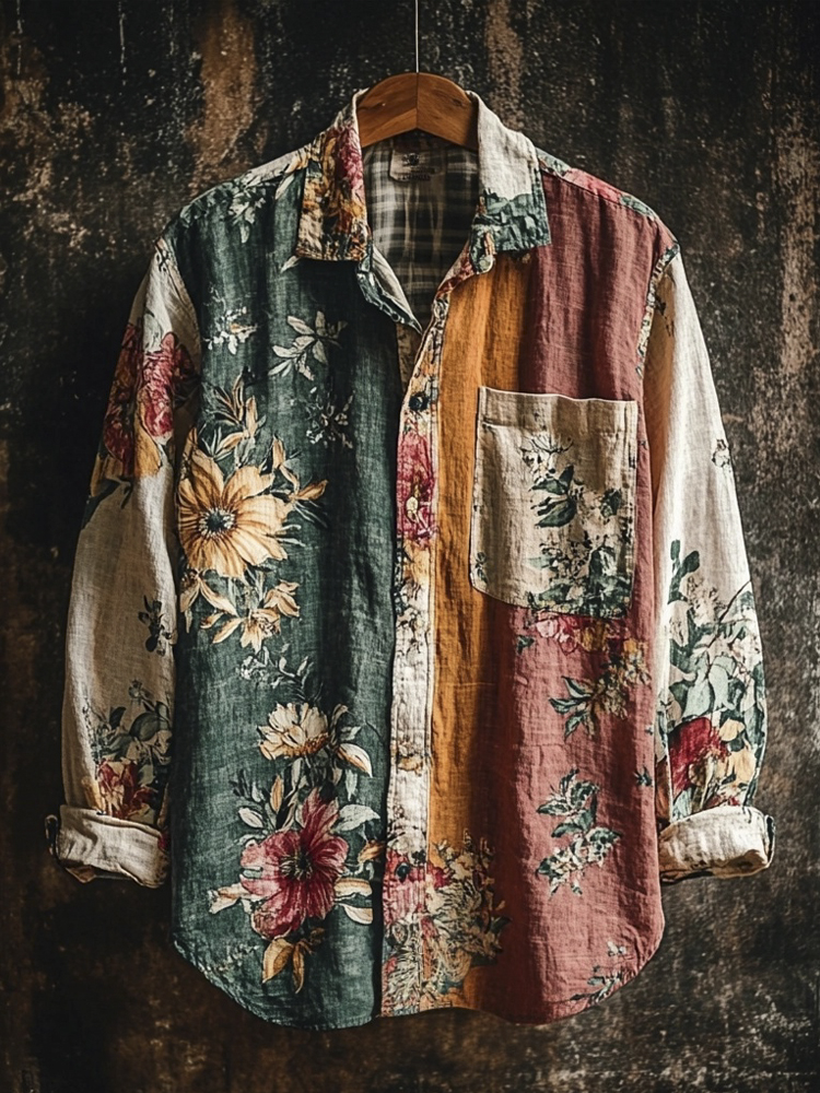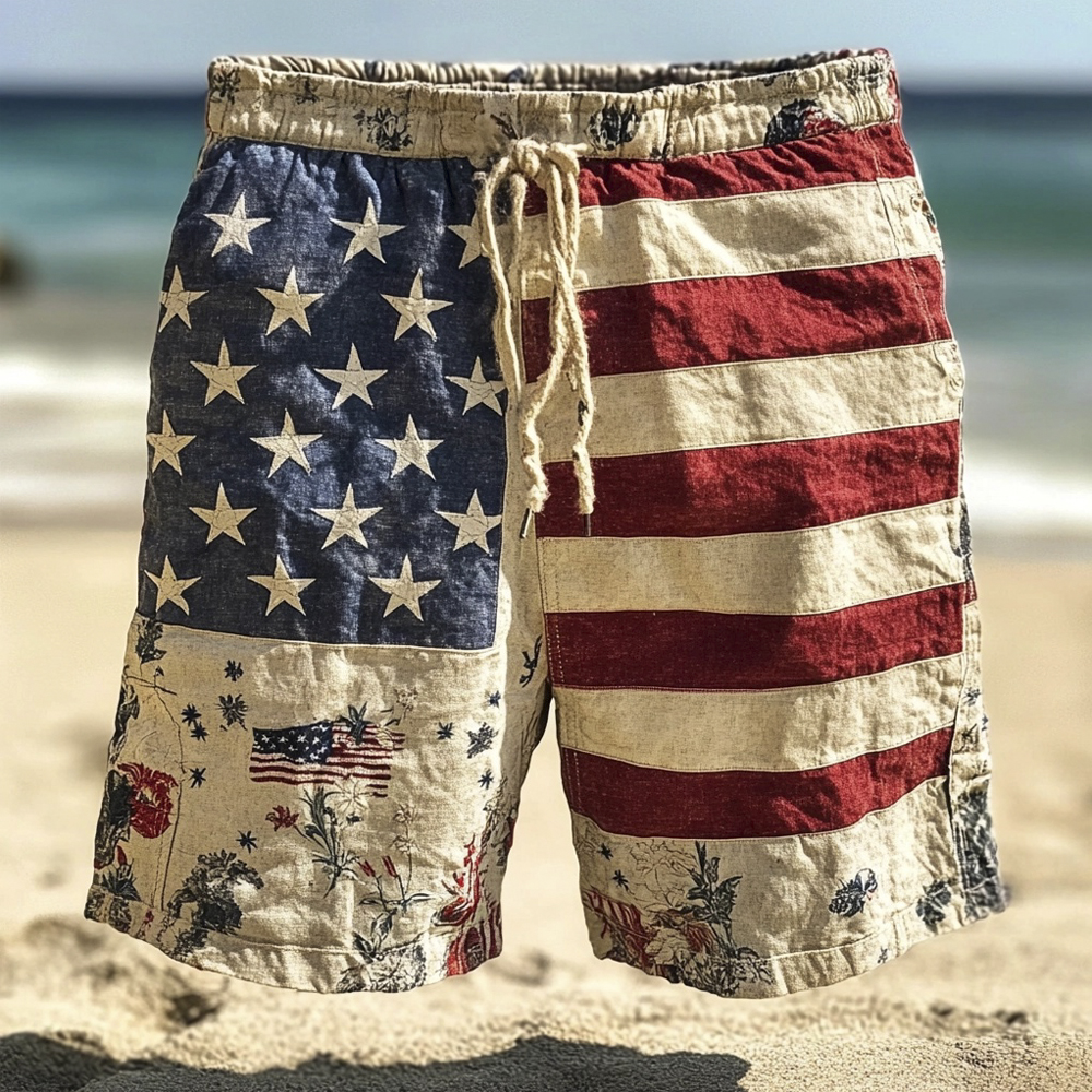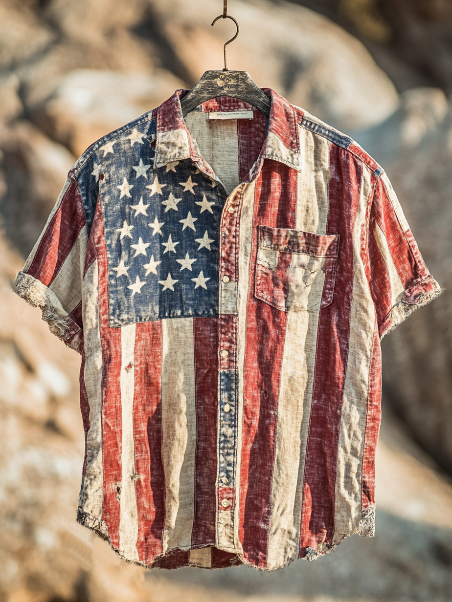 Men's Independence Day America Blue Red With Floral Patchwork Pattern Art Casual Short Sleeve Shirts