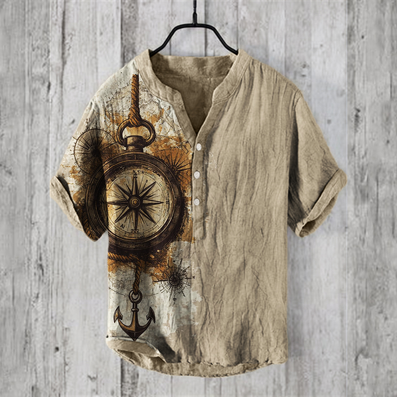 Men's Independence Day America Blue Red With Floral Pattern Art Casual Short Sleeve Shirts